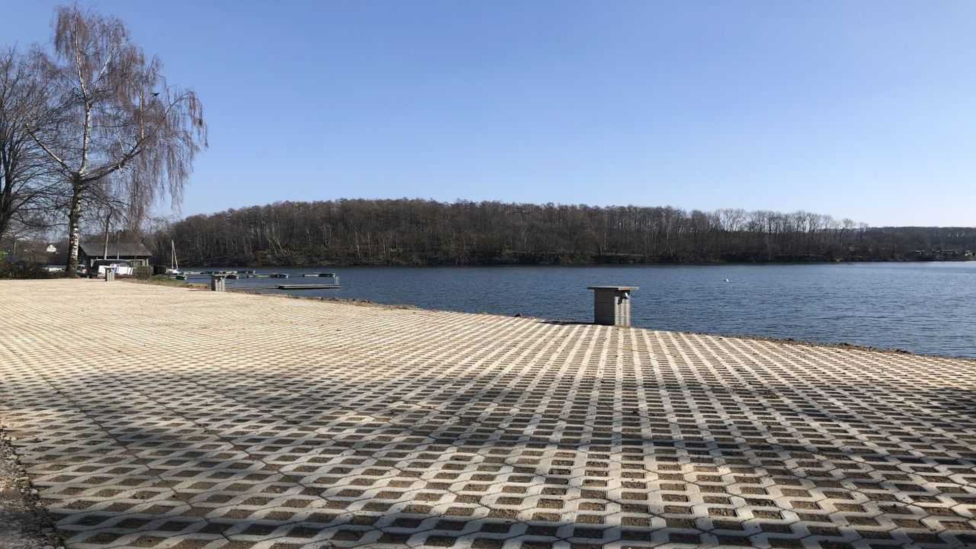 Die Kurzzeit-Stellplätze Großberghausen mit Seeblick befinden sich etwa 30 m vom Badezugang entfernt (siehe Lageplan unten).